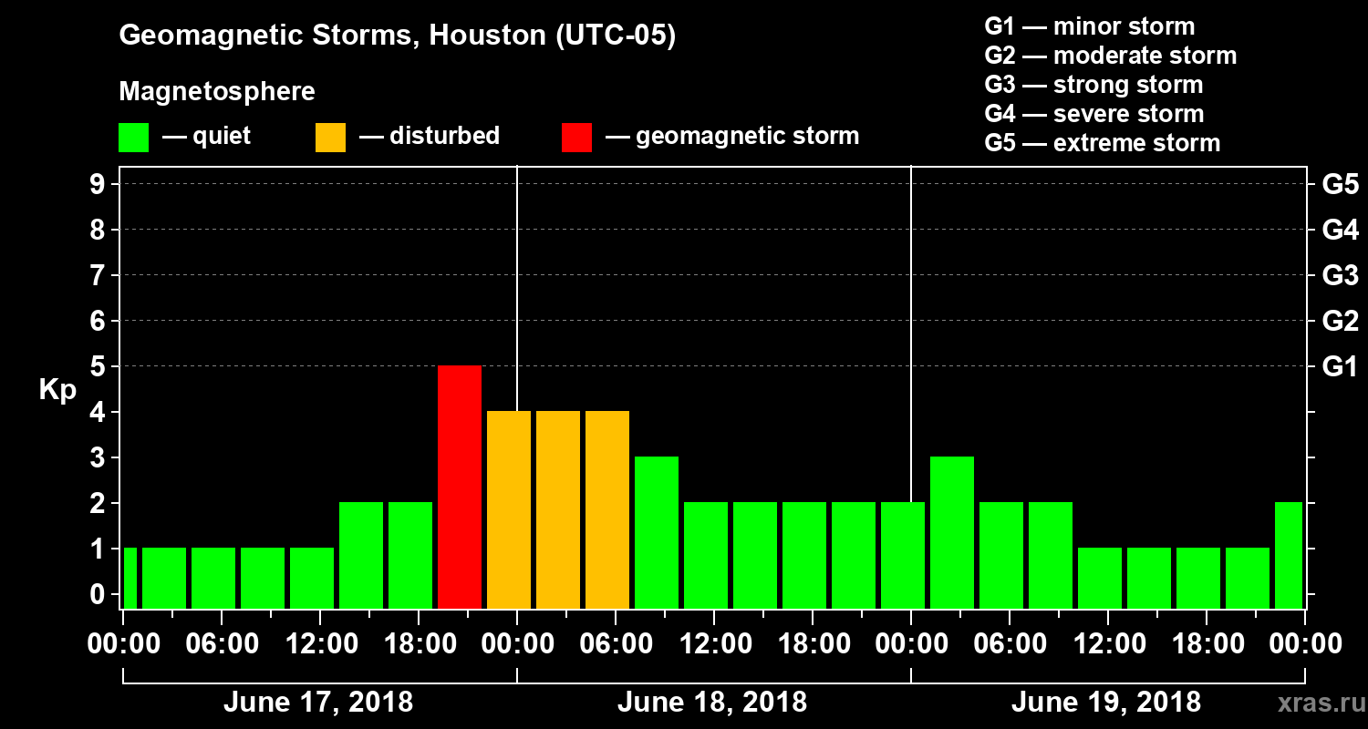 Geomagnetic storms in Houston in June 2018