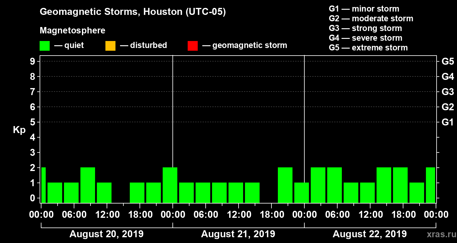 Changes in the geomagnetic index Kp from August 20 to 22, 2019 for mid latitudes