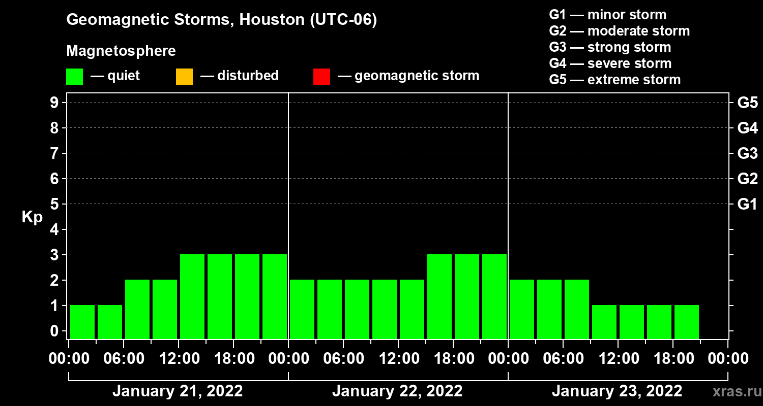 Changes in the geomagnetic index Kp from January 21 to 23, 2022 for mid latitudes