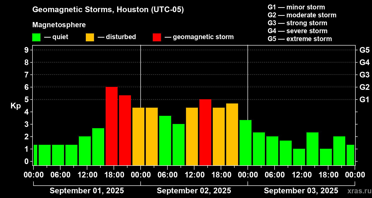 Geomagnetic storms in Houston — Sep 03, 2025