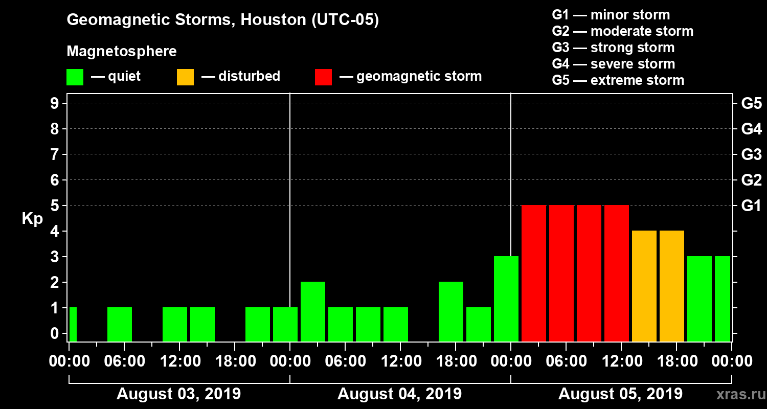 geomagnetic storm was occured — level G1.0 (Kp = 5.00)