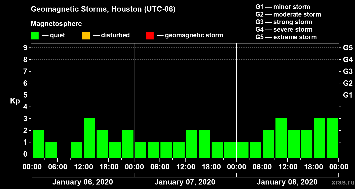 Changes in the geomagnetic index Kp from January 6 to 8, 2020 for mid latitudes
