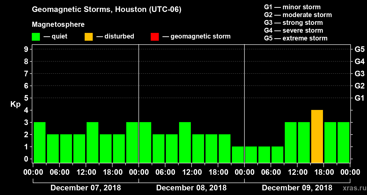 Geomagnetic storms in Houston on Dec 09, 2018