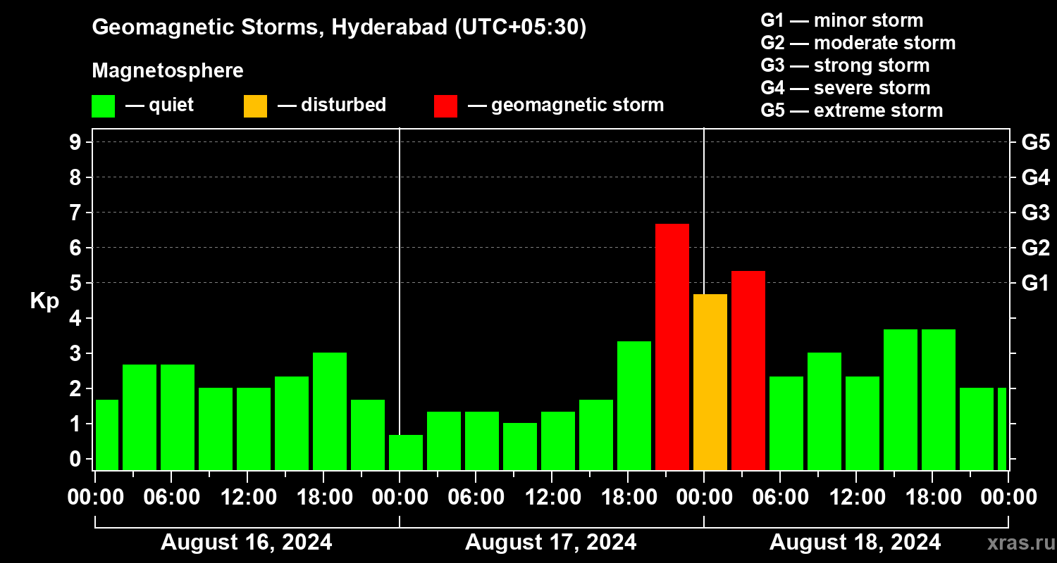 Geomagnetic storms in Hyderabad — Aug 18, 2024