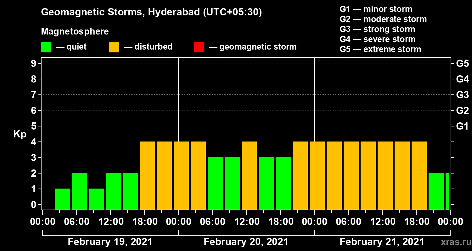Geomagnetic storms in Hyderabad in February 2021
