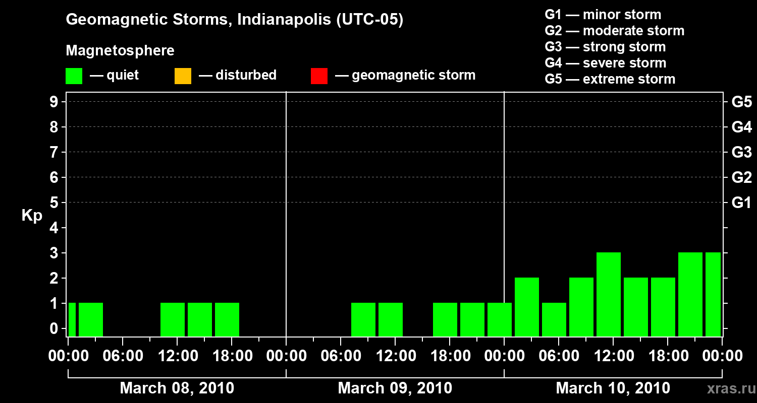 Geomagnetic storms in Indianapolis — Mar 10, 2010