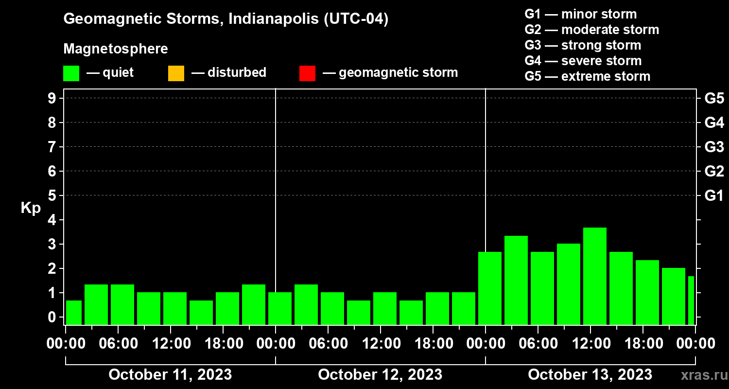 Geomagnetic storms in Indianapolis — Oct 13, 2023