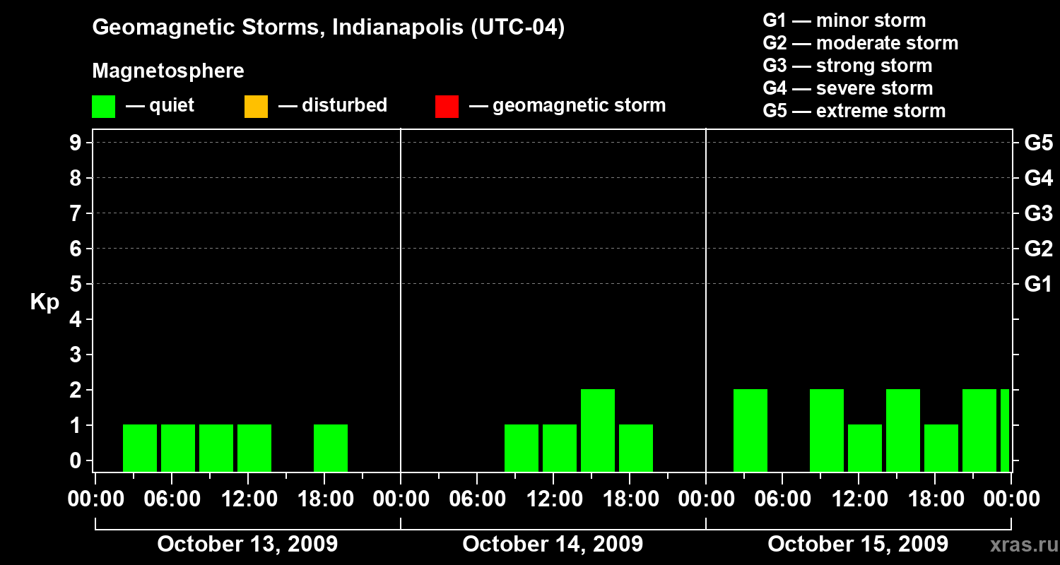 Geomagnetic storms in Indianapolis on Oct 15, 2009