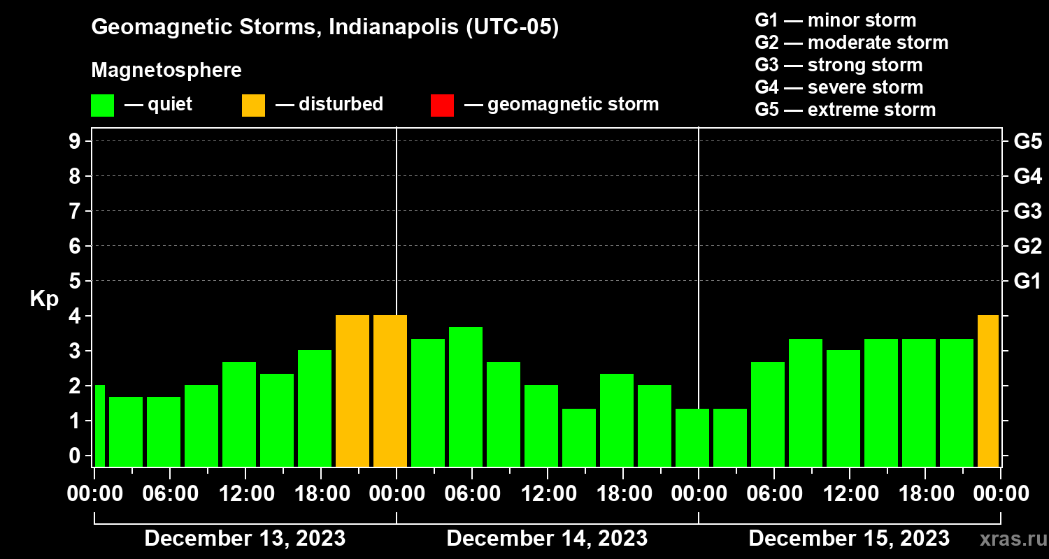 Geomagnetic storms in Indianapolis in December 2023