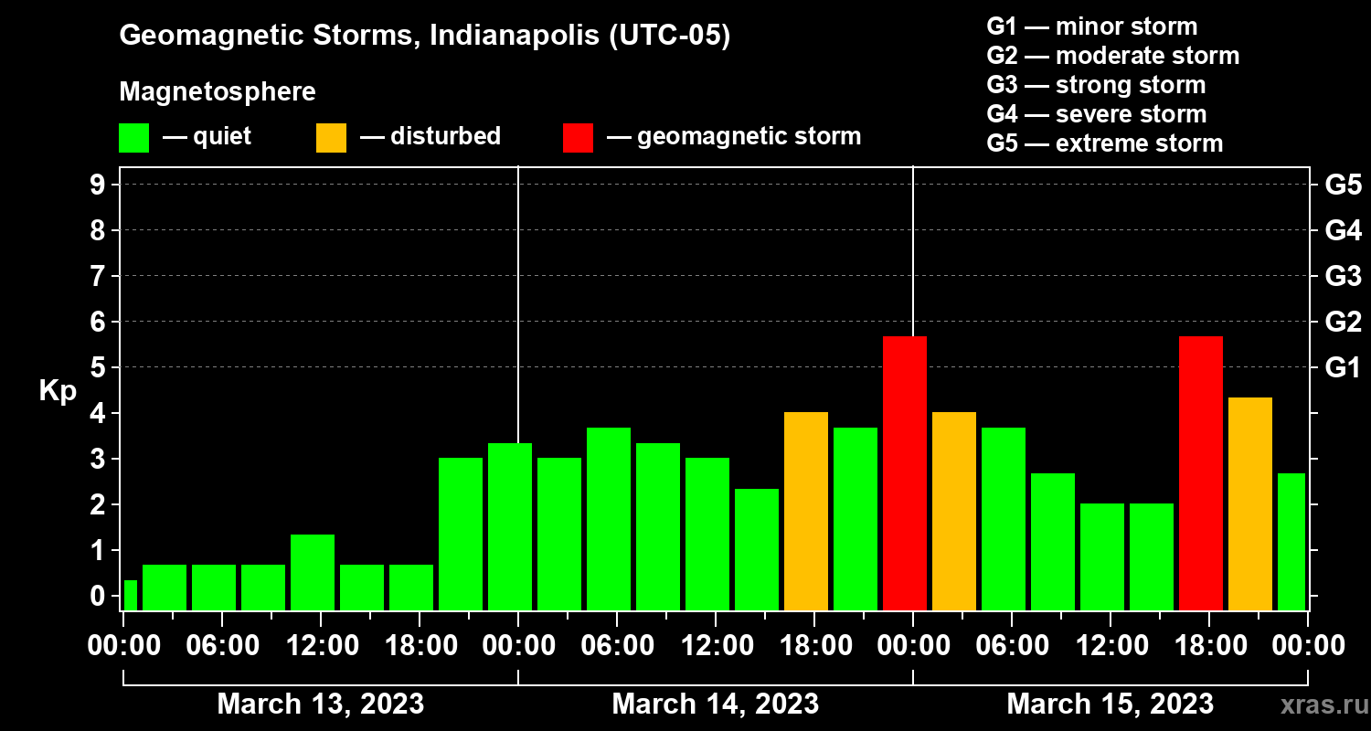 Geomagnetic storms in Indianapolis — Mar 15, 2023