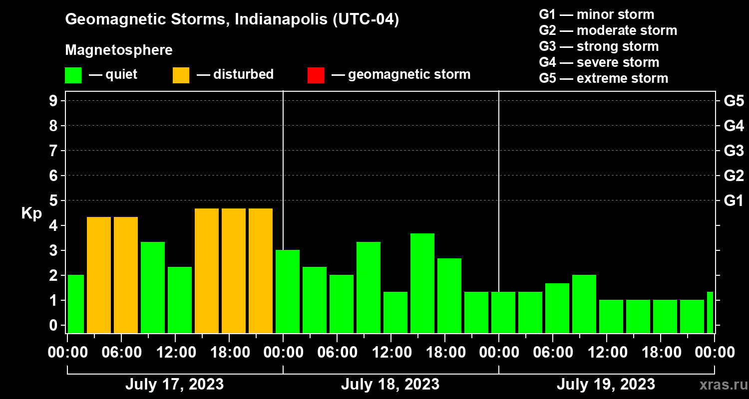 Geomagnetic storms in Indianapolis in July 2023
