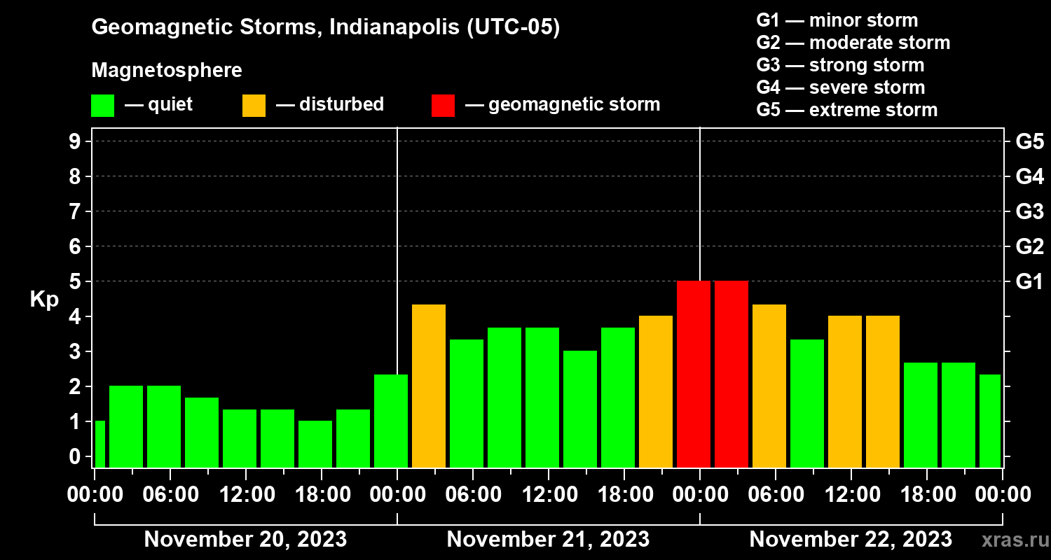 Geomagnetic storms in Indianapolis — Nov 22, 2023