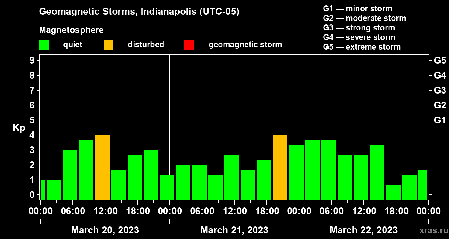 Geomagnetic storms in Indianapolis in March 2023