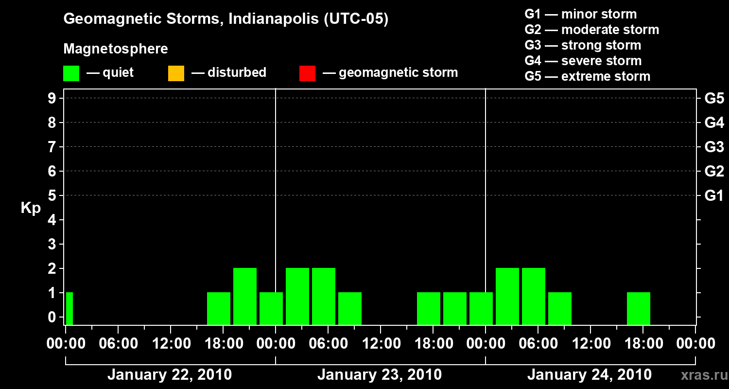 Geomagnetic storms in Indianapolis on Jan 24, 2010