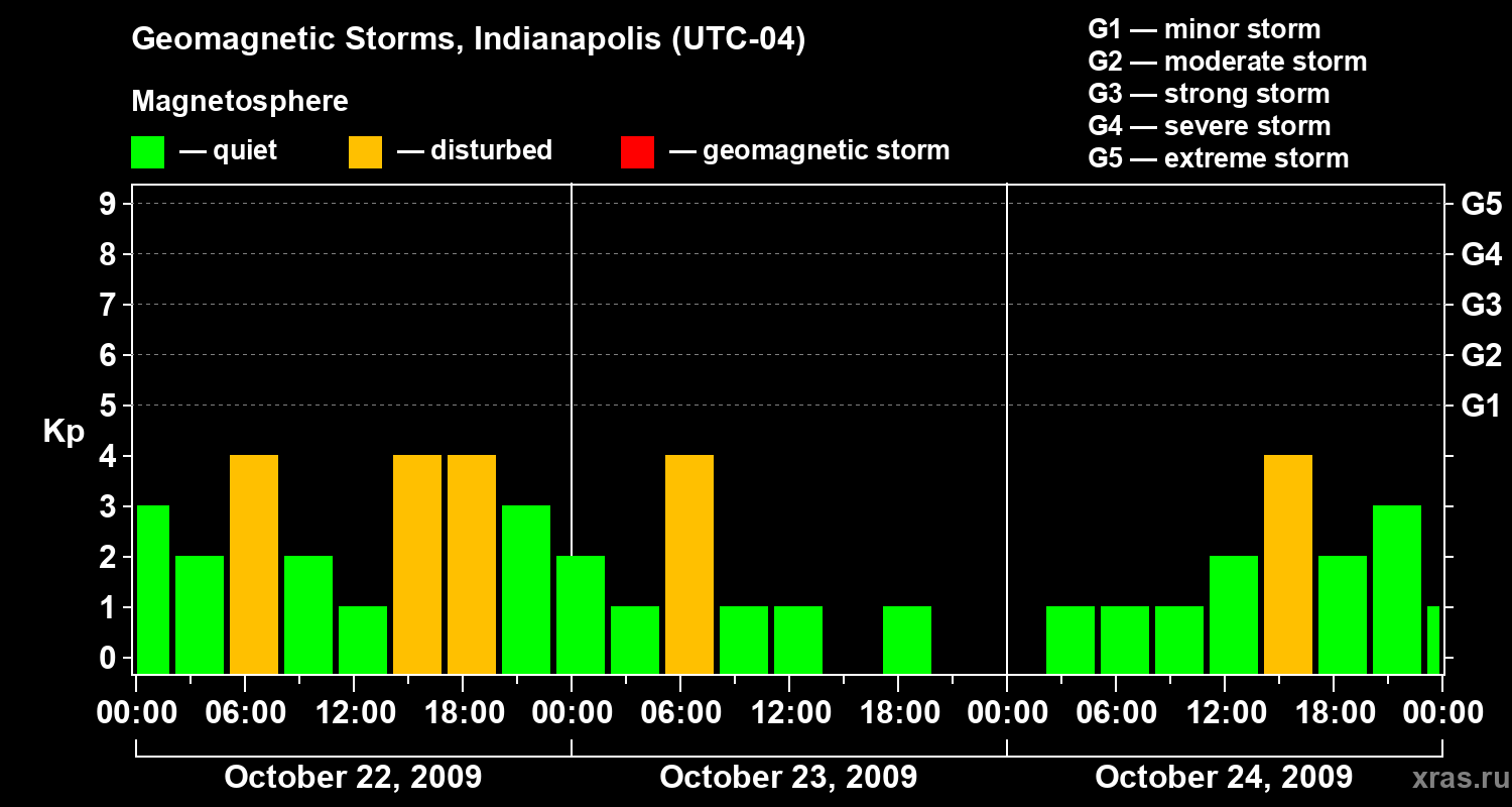 Geomagnetic storms in Indianapolis on Oct 24, 2009