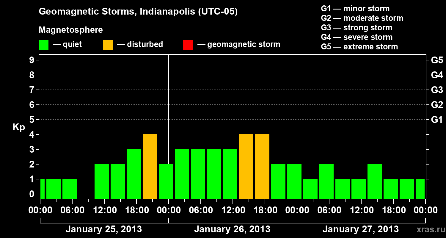 Geomagnetic storms in Indianapolis in January 2013