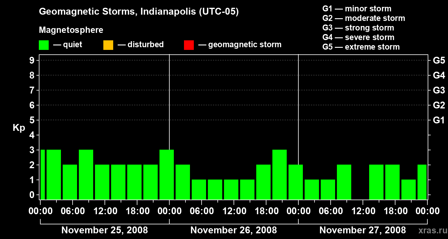 Geomagnetic storms in Indianapolis on Nov 27, 2008
