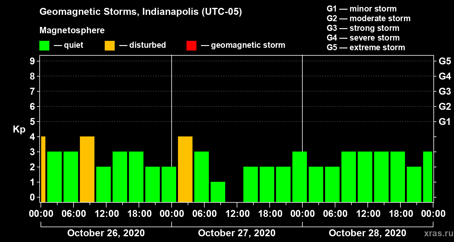 Geomagnetic storms in Indianapolis in October 2020