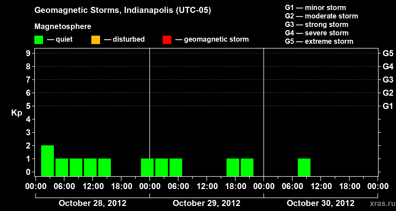 Geomagnetic storms in Indianapolis on Oct 30, 2012