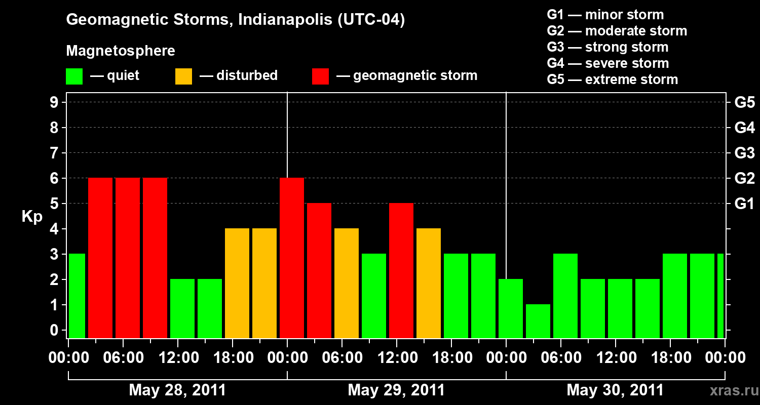 Geomagnetic storms in Indianapolis on May 30, 2011