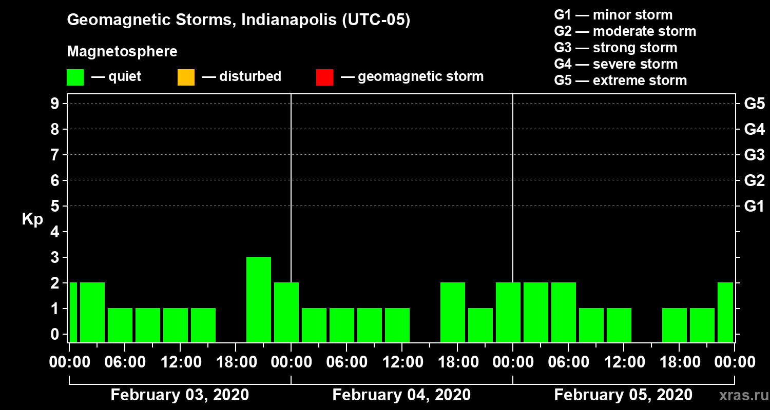 Geomagnetic storms in Indianapolis on Feb 05, 2020