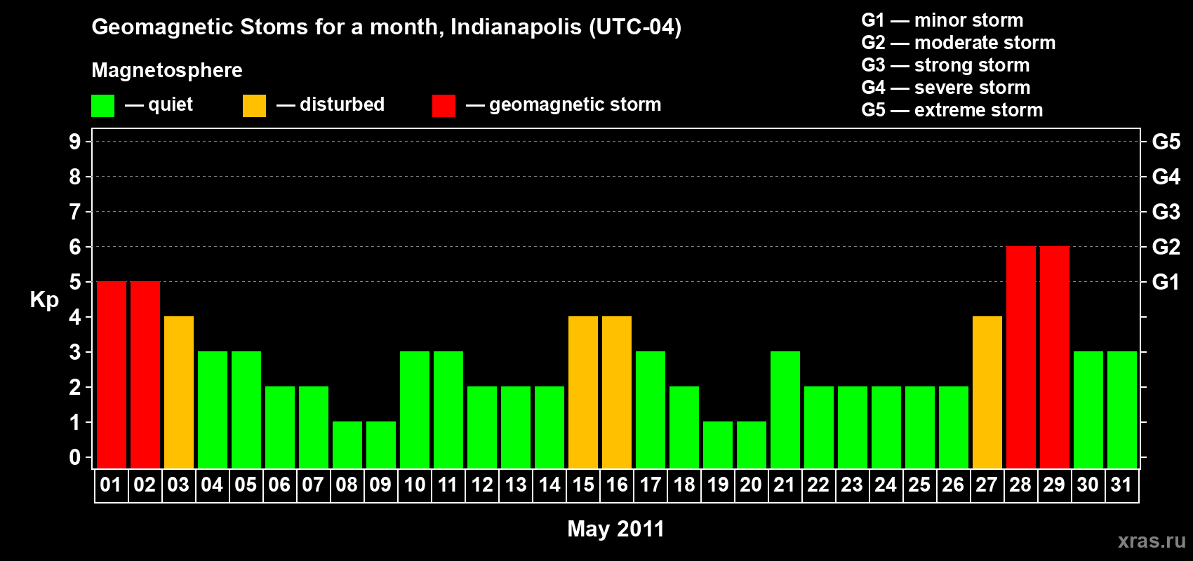 List of magnetic storms in May 2011