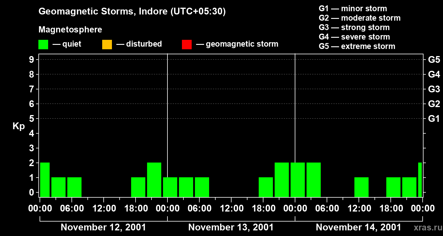 Changes in the geomagnetic index Kp from November 12 to 14, 2001 for mid latitudes