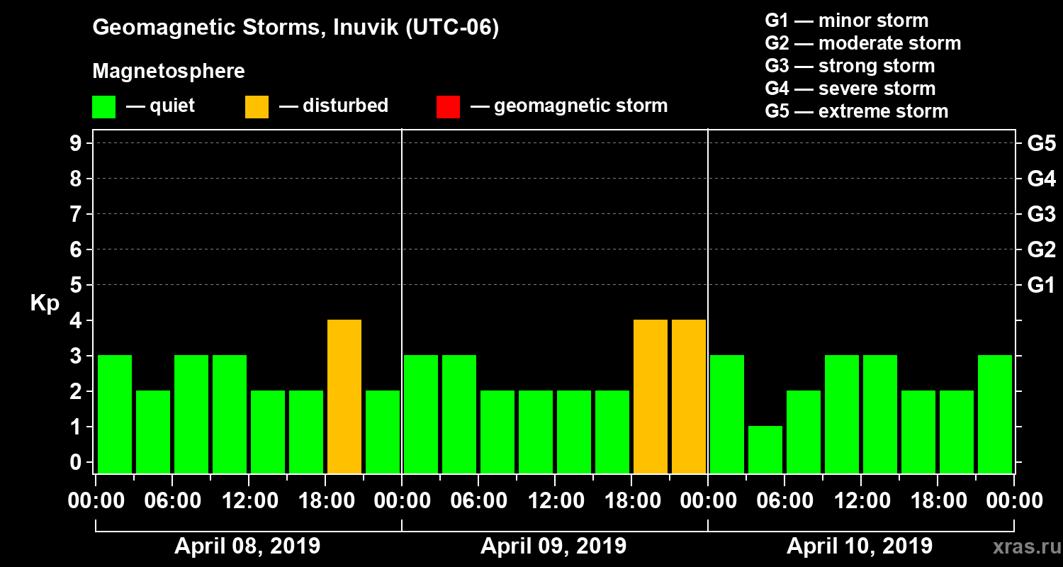 Geomagnetic storms in Inuvik on Apr 10, 2019