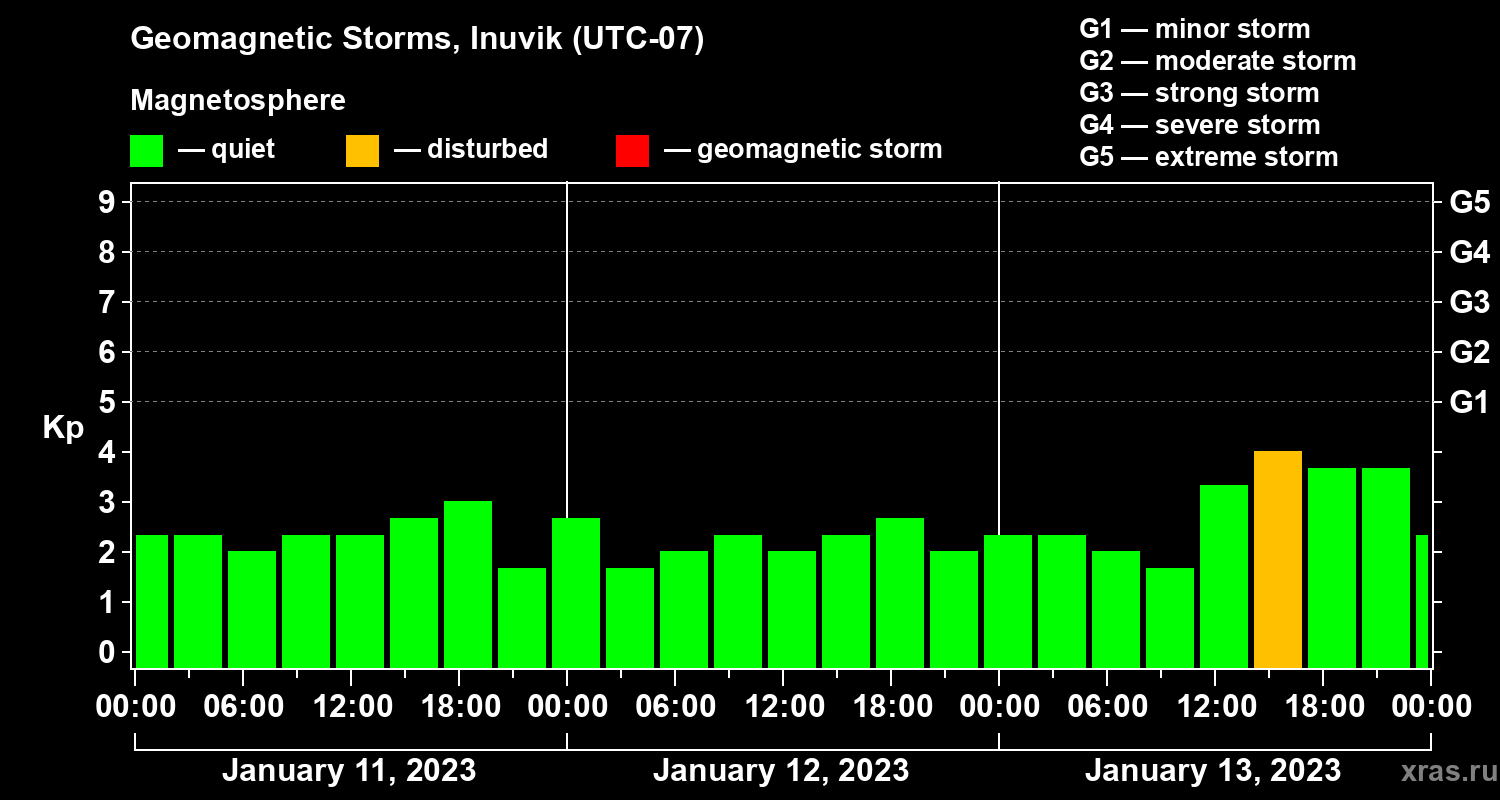 Geomagnetic storms in Inuvik on Jan 13, 2023