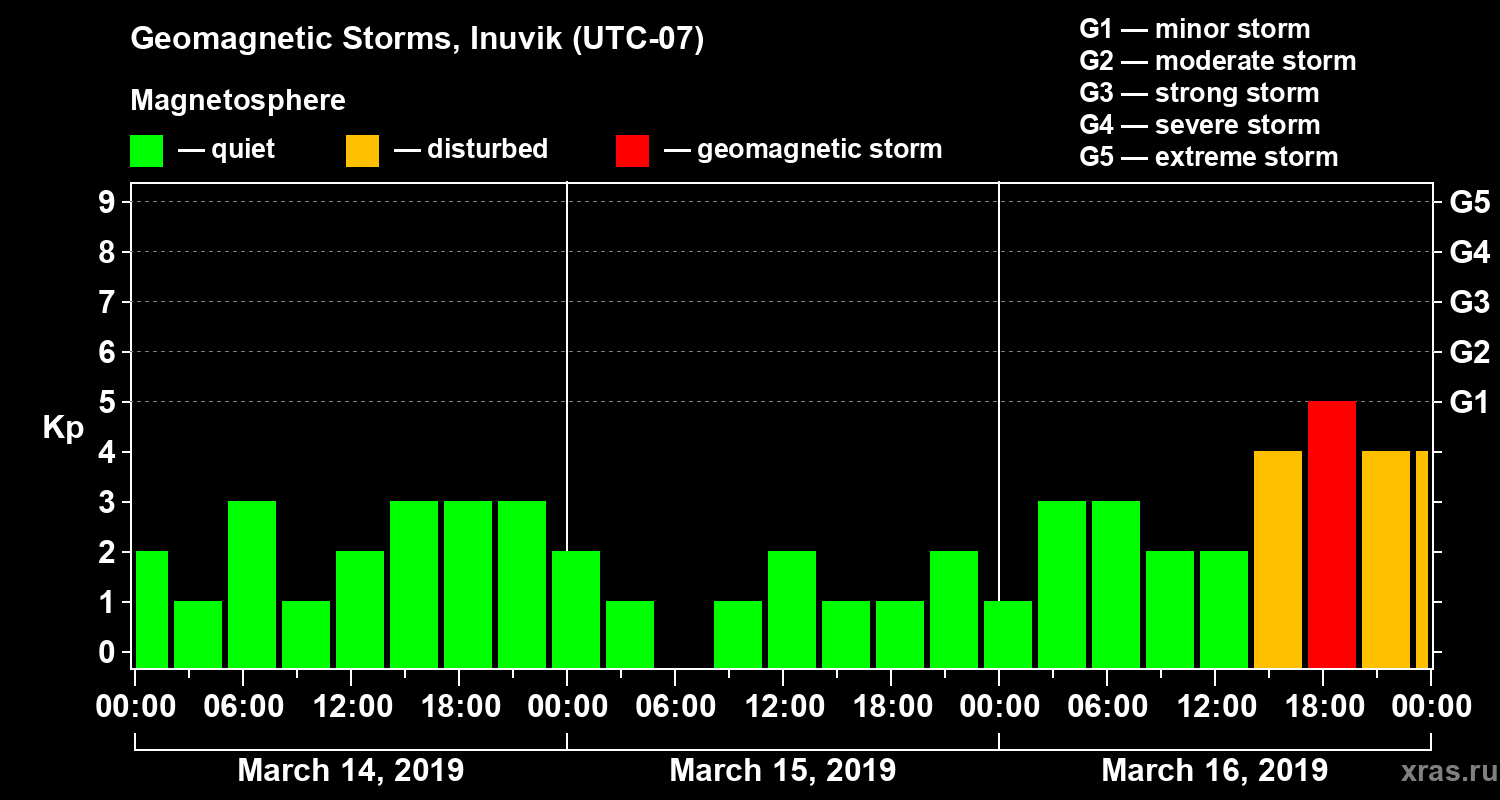 Geomagnetic storms in Inuvik on Mar 16, 2019