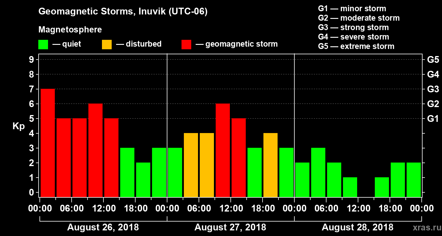 Geomagnetic storms in Inuvik — Aug 28, 2018