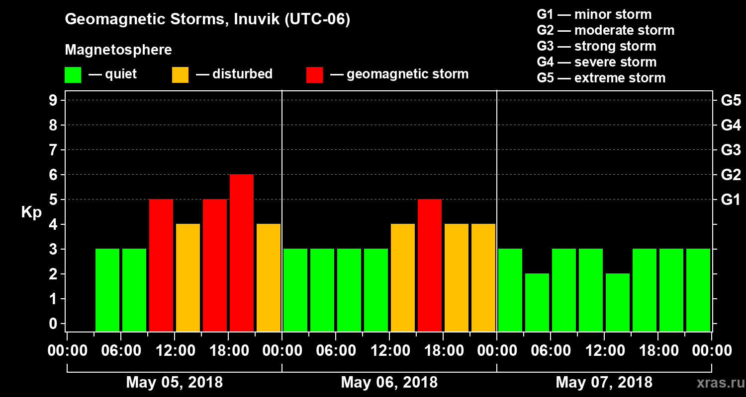 Geomagnetic storms in Inuvik — May 07, 2018
