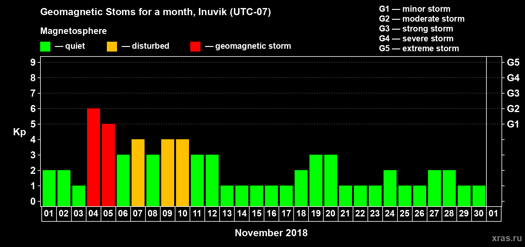 List of magnetic storms in November 2018