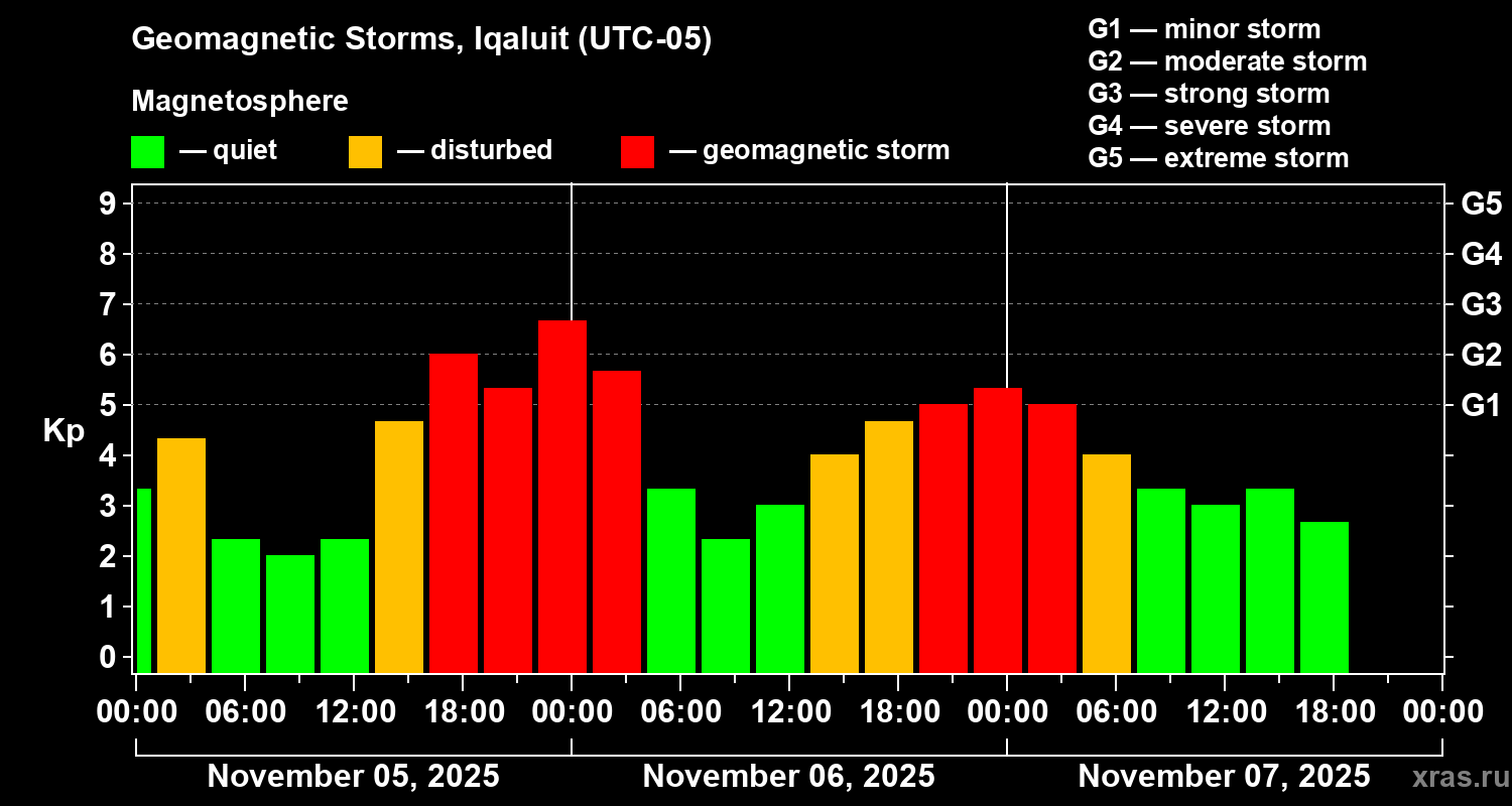 Geomagnetic storms in Iqaluit — Nov 07, 2025