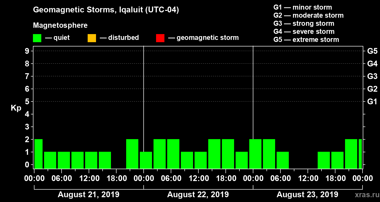 Geomagnetic storms in Iqaluit — Aug 23, 2019
