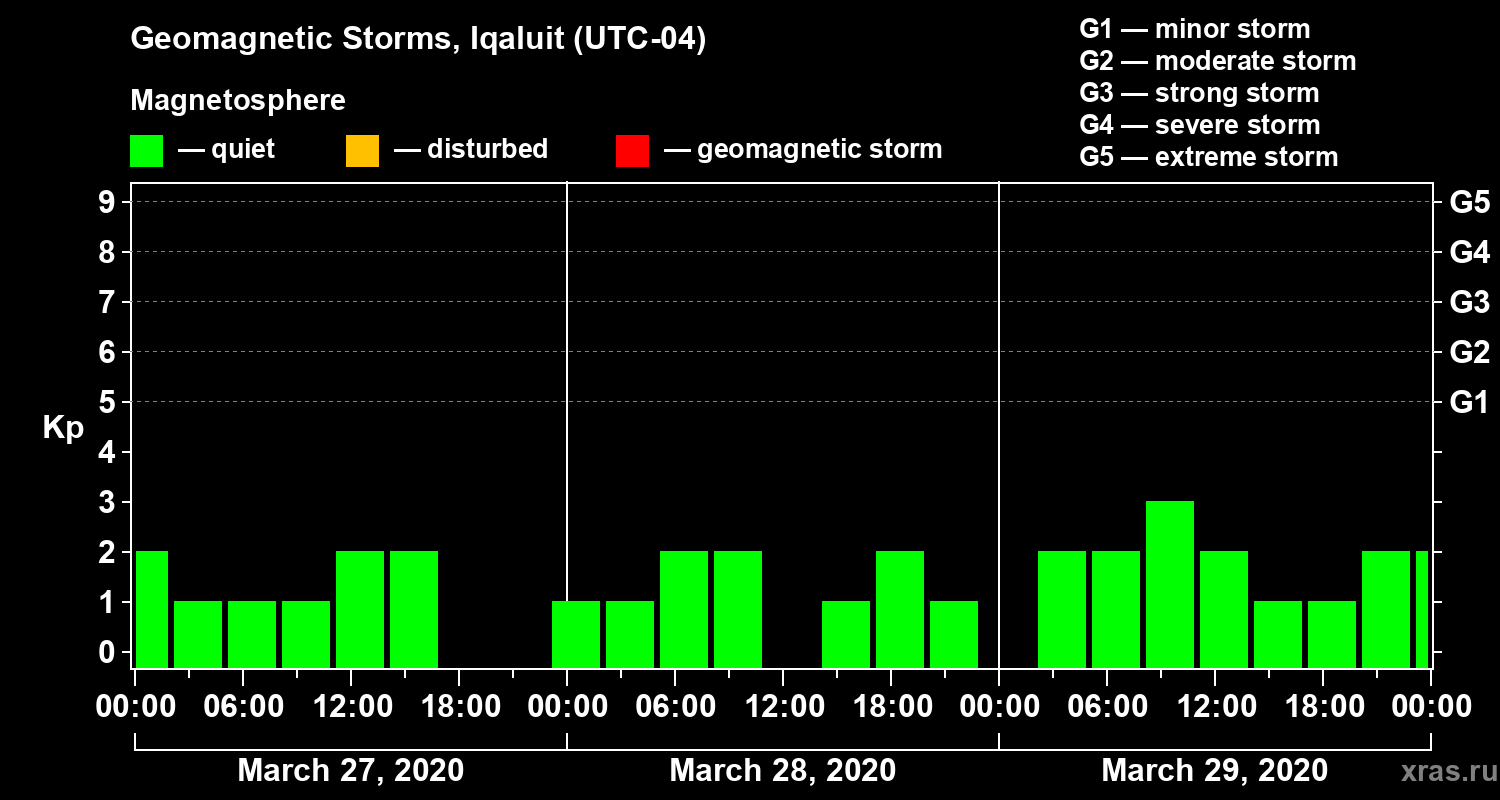 Geomagnetic storms in Iqaluit on Mar 29, 2020