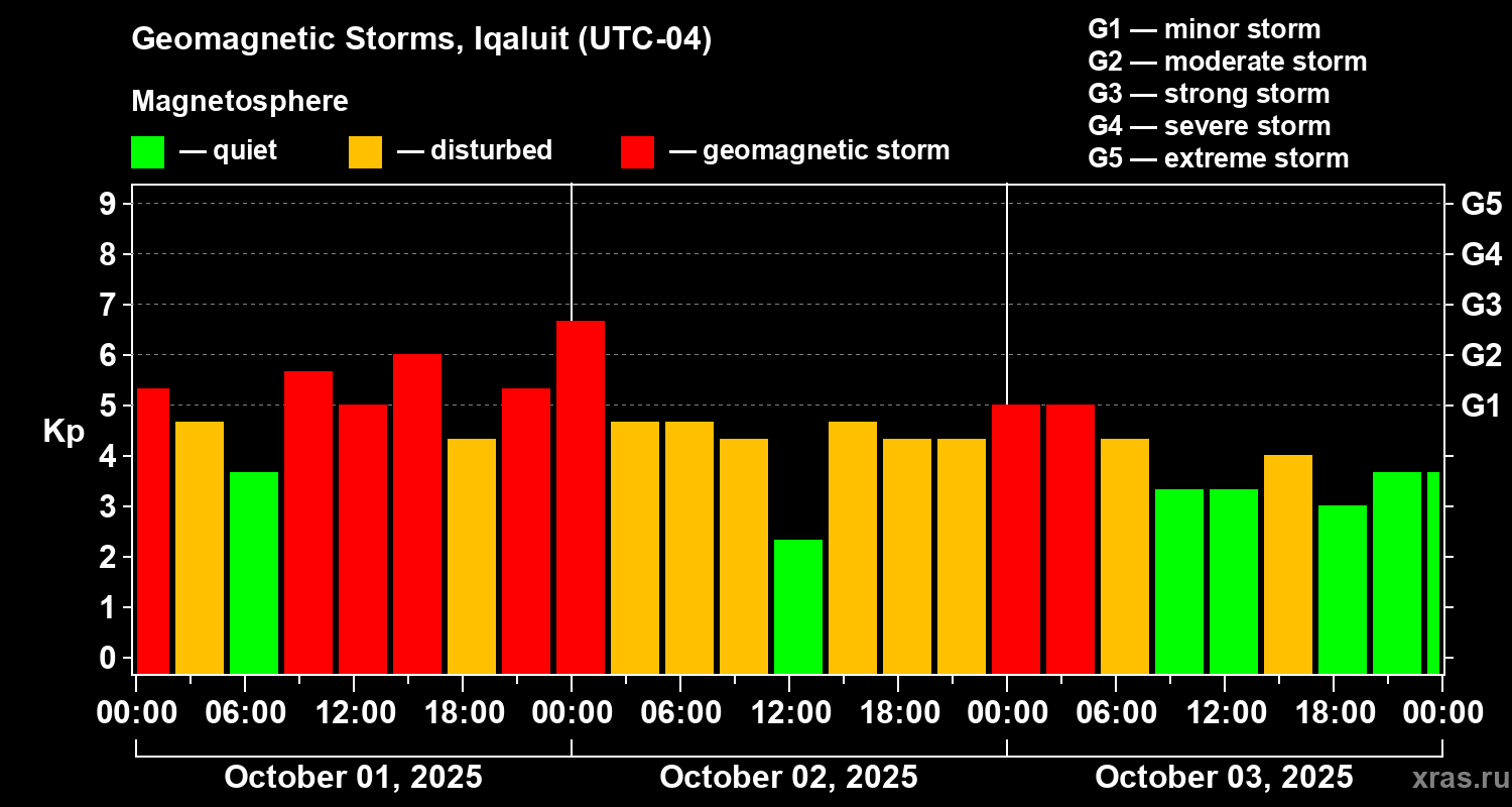 Geomagnetic storms in Iqaluit — Oct 03, 2025
