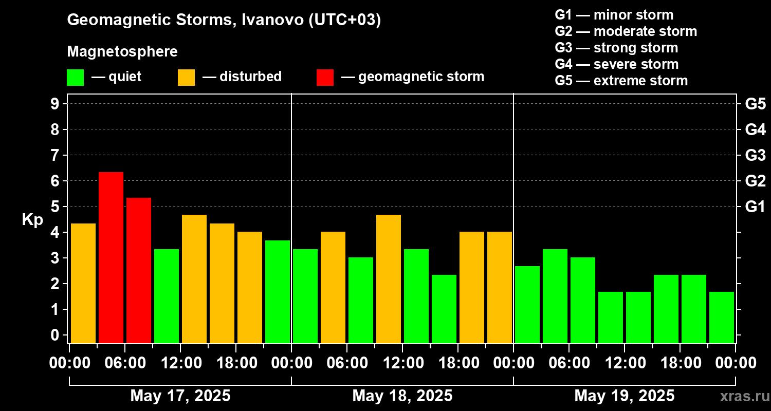 Geomagnetic storms in Ivanovo on May 19, 2025