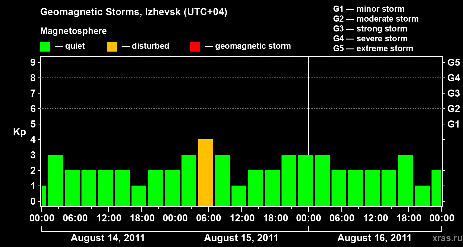 Geomagnetic storms in Izhevsk on Aug 16, 2011