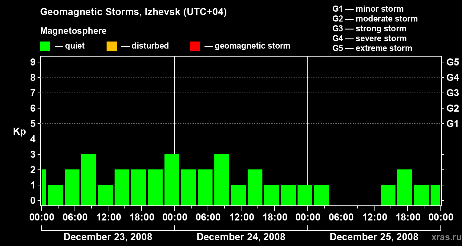 Geomagnetic storms in Izhevsk on Dec 25, 2008