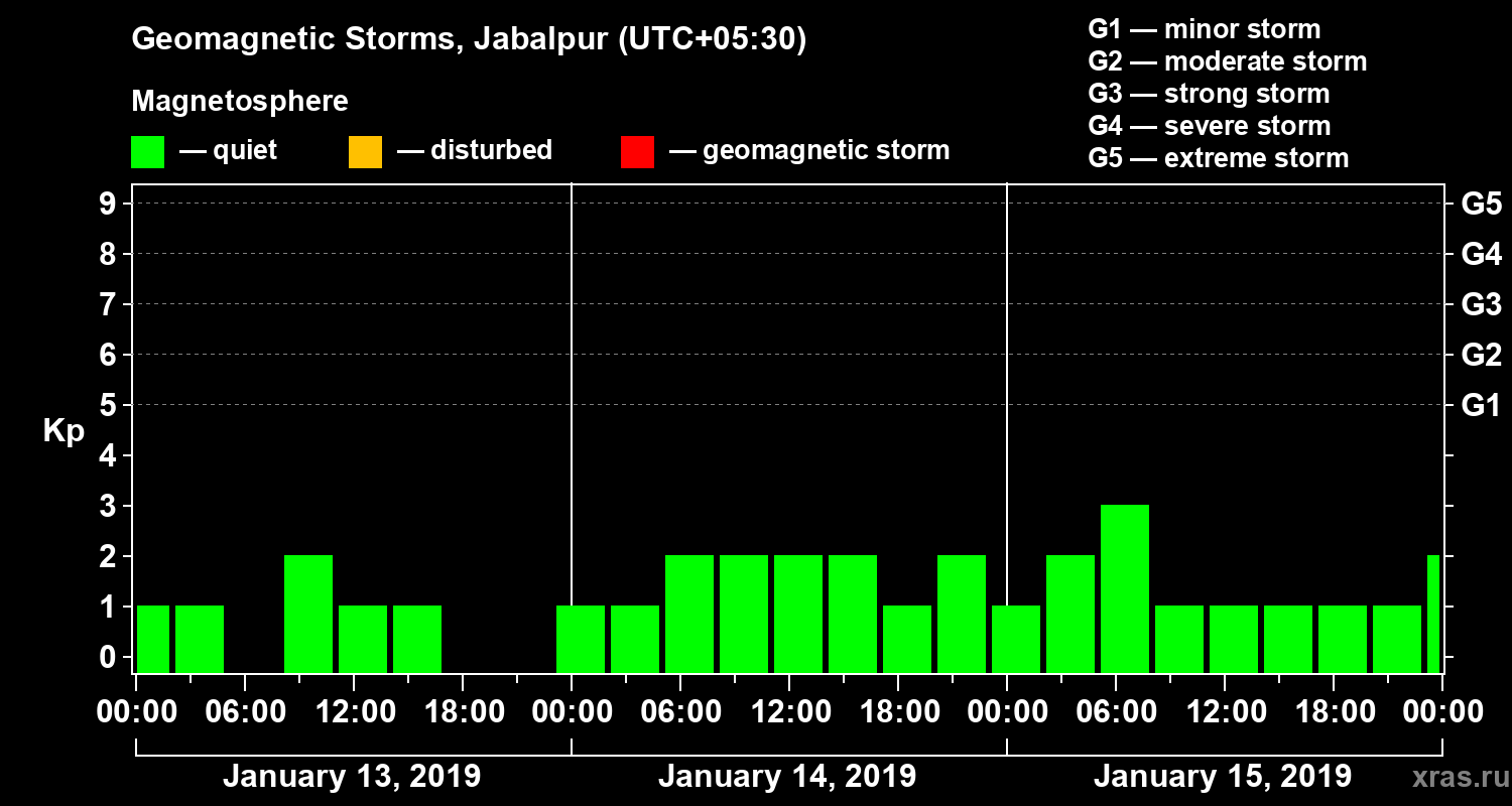 Geomagnetic storms in Jabalpur on Jan 15, 2019