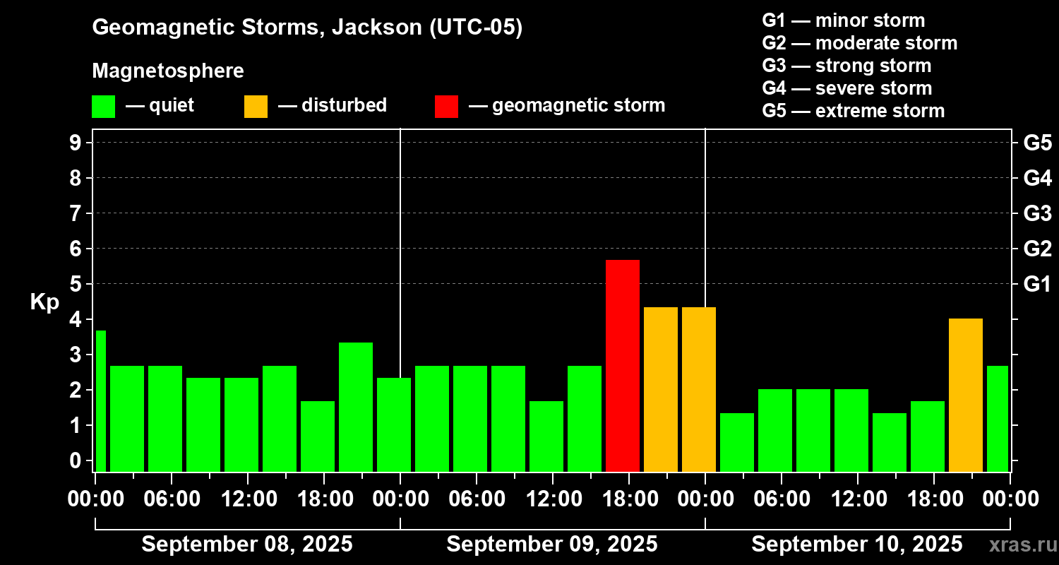 Geomagnetic storms in Jackson — Sep 10, 2025