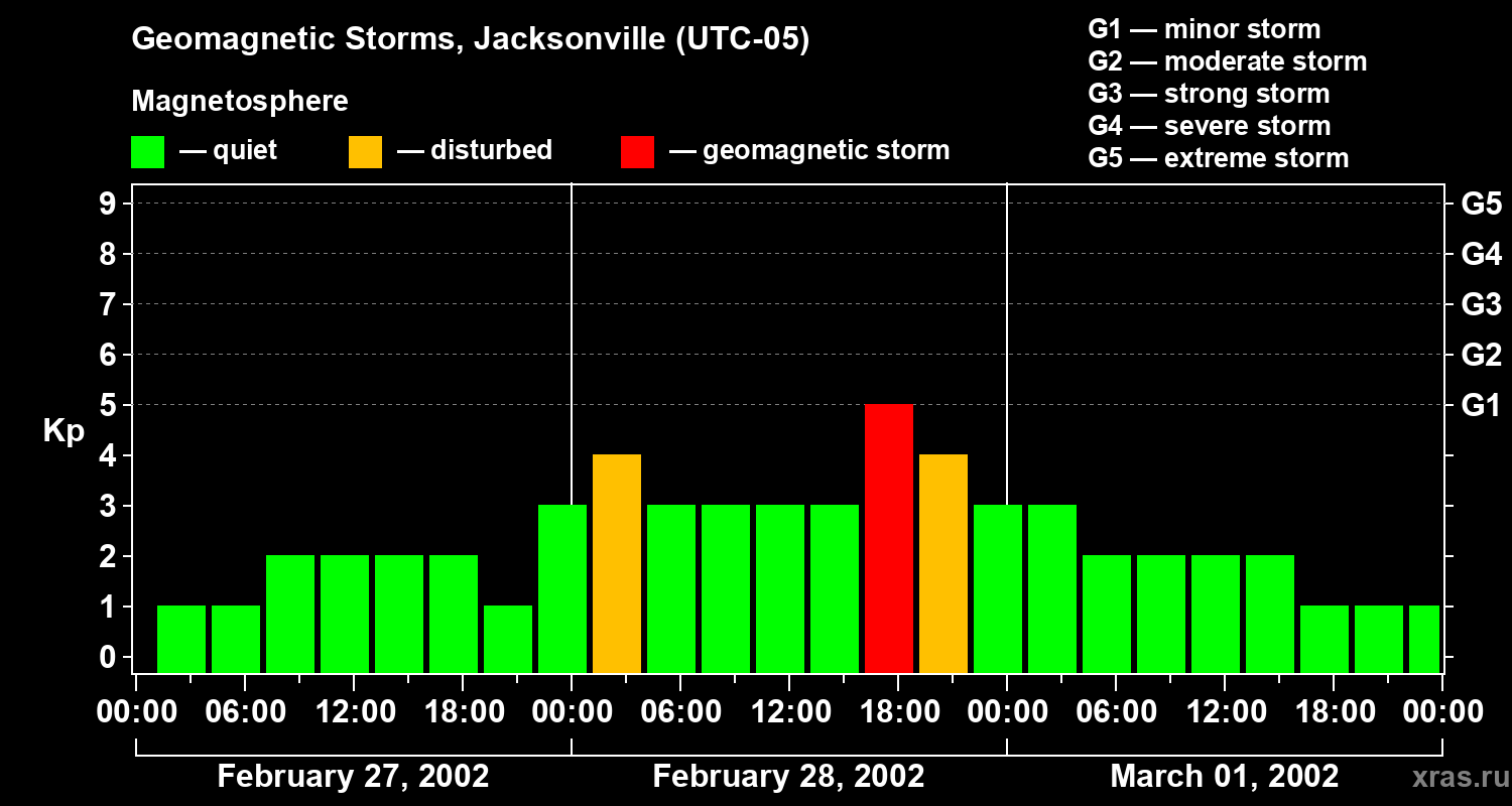 Geomagnetic storms in Jacksonville — Mar 01, 2002