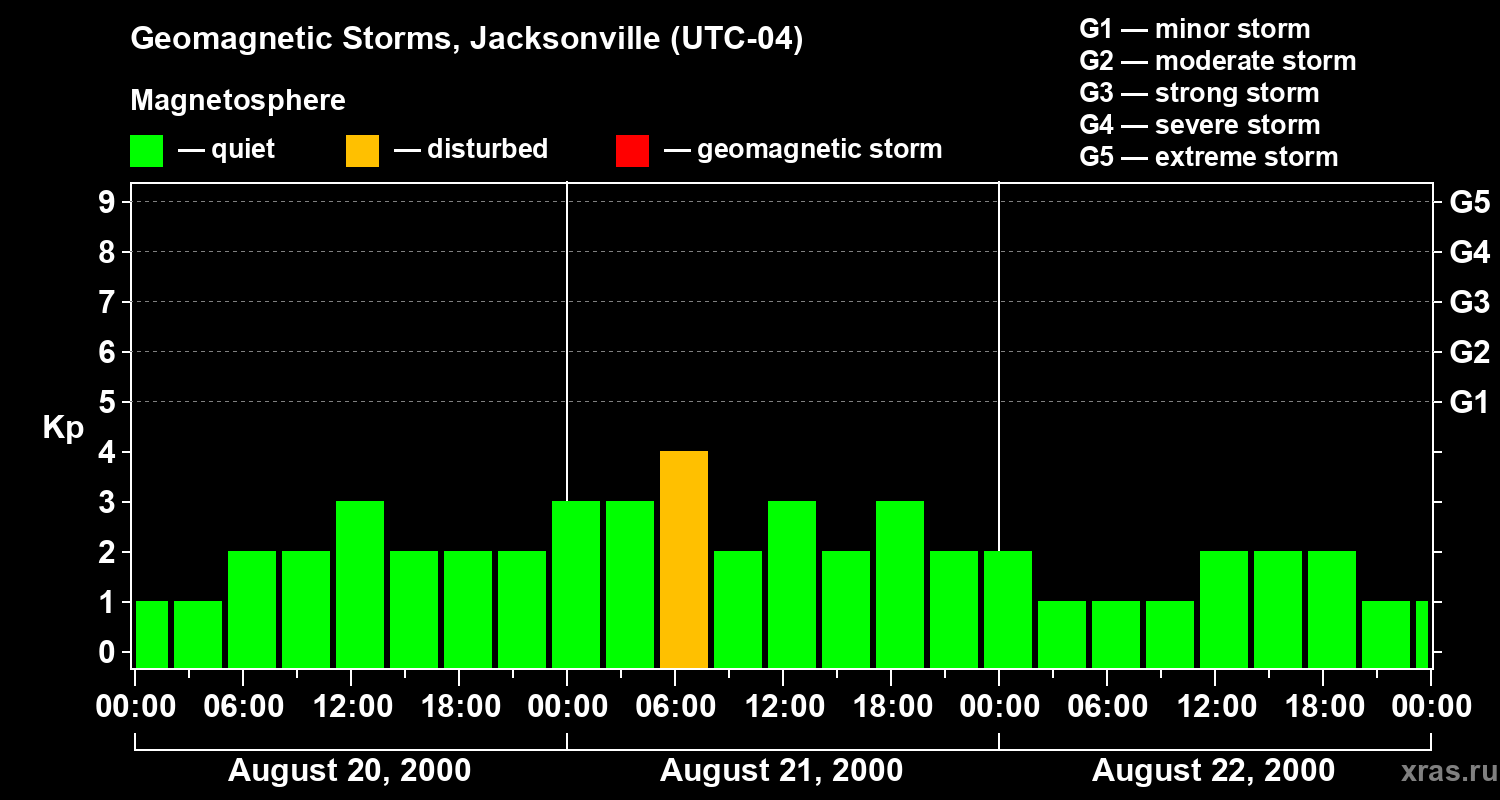 Geomagnetic storms in Jacksonville on Aug 22, 2000