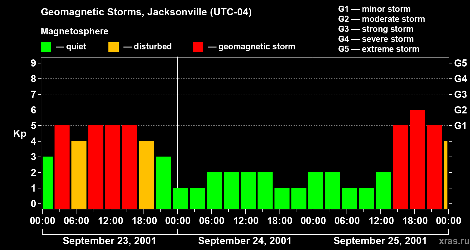 Geomagnetic storms in Jacksonville on Sep 25, 2001