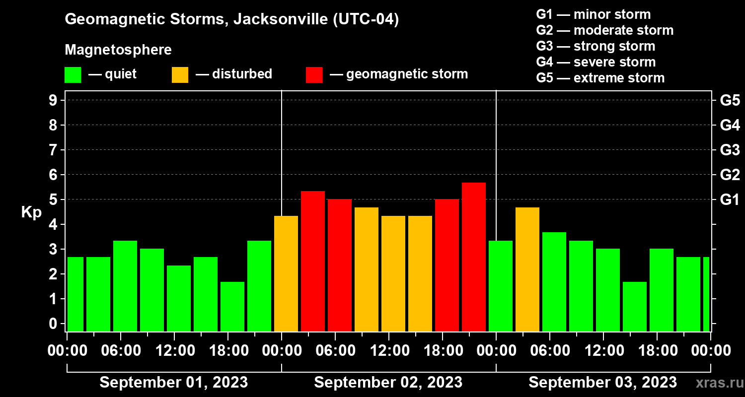 Geomagnetic storms in Jacksonville — Sep 03, 2023