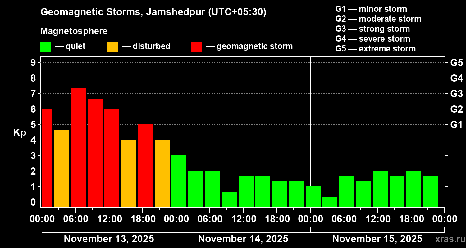 Geomagnetic storms in Jamshedpur — Nov 15, 2025