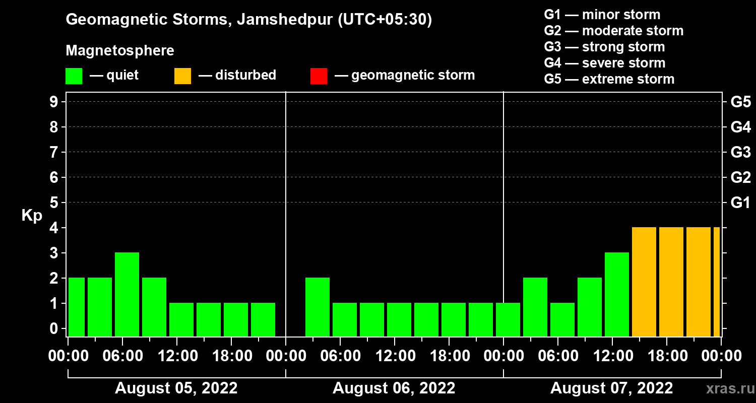 Geomagnetic storms in Jamshedpur — Aug 07, 2022