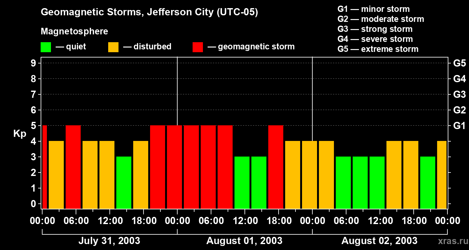 Geomagnetic storms in Jefferson City — Aug 02, 2003
