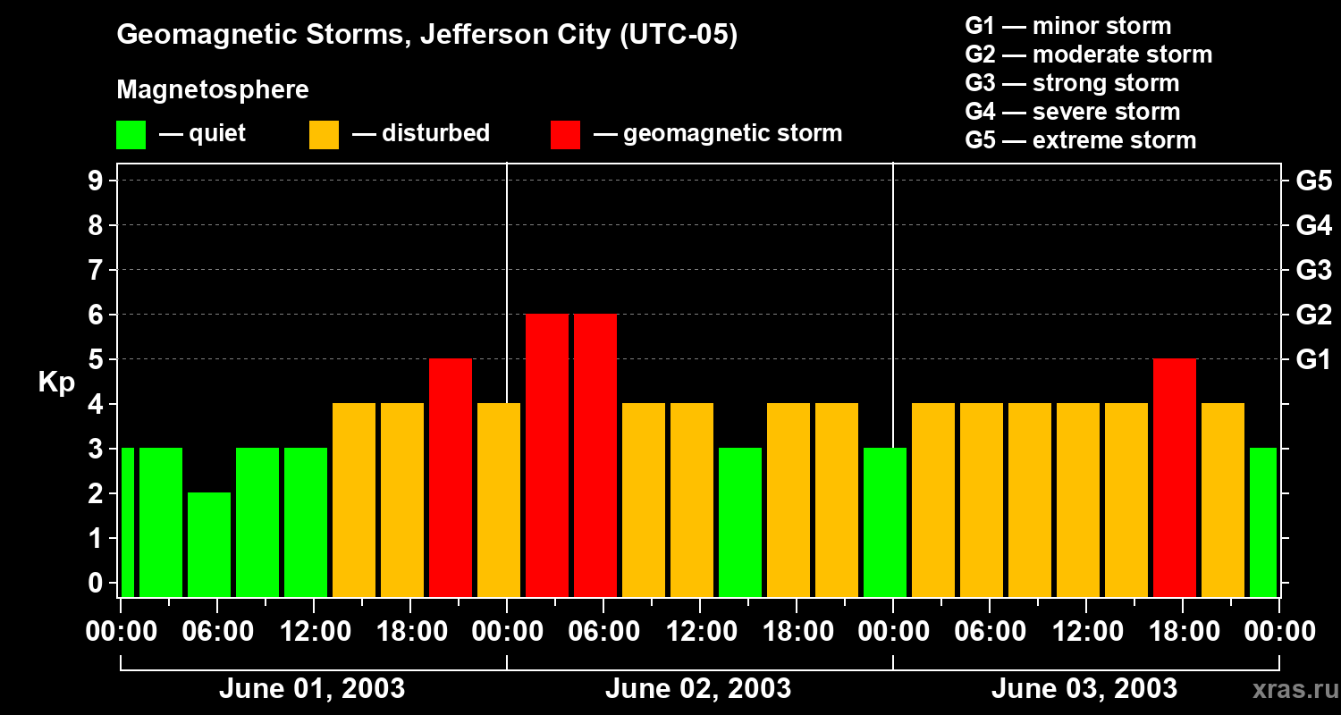 Geomagnetic storms in Jefferson City — Jun 03, 2003